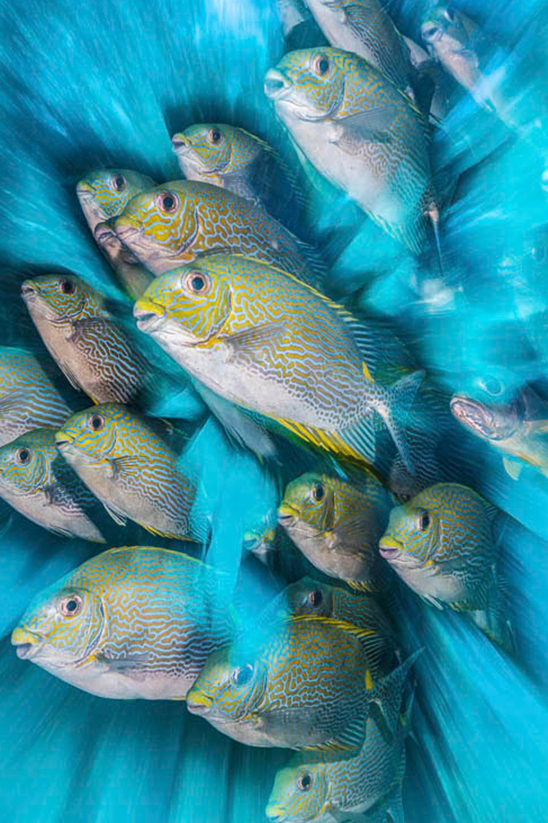 Nicholas More ganó esta categoría con esta fotografía tomada en Raja Ampat, Indonesia. “Me encontré con un grupo de peces conejo muy amistoso bajo un embarcadero y tomé muchas fotos del banco. Empecé a usar el amplio rango de zoom de mi Sigma 17-70 combinado con una lenta velocidad de obturación para crear imágenes borrosas con zoom”.