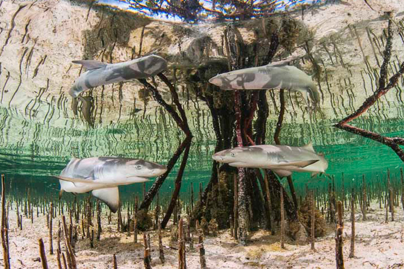 Anita Kainrath ganó esta categoría con una foto de tiburones limón bebés que viven en un manglar de las Bahamas. Guardería de tiburones muestra la importancia de estos ecosistemas para la conservación de estas especies y para el equilibrio de otras especies en el mundo. Con esta foto se convirtió en la revelación de los Premios de Fotografía Submarina.