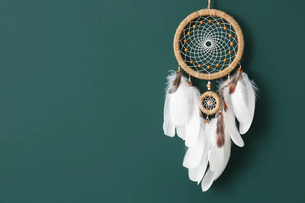 3. Atrapasueños Foto de Pixel-Shot / Shutterstock Los pueblos ojibwa creían que la red circular filtraba los sueños: las pesadillas quedaban atrapadas en el tejido y los sueños buenos pasaban por el centro. Colgarlo sobre la cama era una protección espiritual para niños y adultos. Puede encontrar en Canadá y Estados Unidos en versiones hechas a mano con plumas naturales, aros de sauce y cuerdas tejidas por artesanos nativos. En Latinoamérica también puede adquirir atrapasueños artesanales.